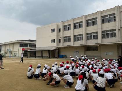 運動場の学習の様子