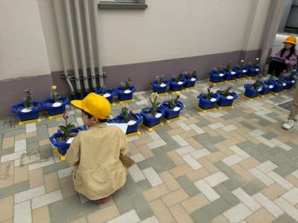 2年生は生活で昨年度育てたチューリップの観察を行いました。