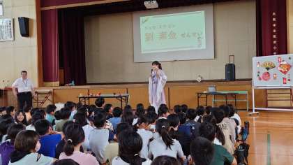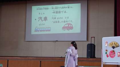 5年生は、中国の先生を招いて、中国と日本のつながりを確認し、より良い関係を築くために、違いや共通点について考えました。 中国語の挨拶、中国の文化や歴史、美味しそうな料理、学校の様子、マナー、遊びなど、どれも興味深いお話でした。 子どもたちは興味津々でお話を聞いていました。