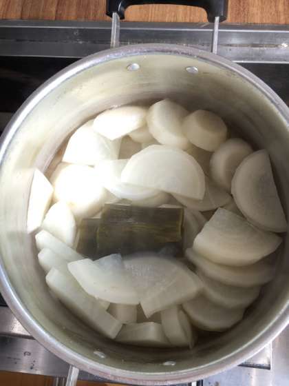 まずは、鍋に昆布を入れて、グツグツグツ。