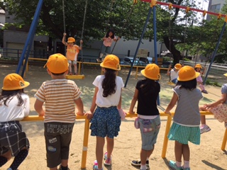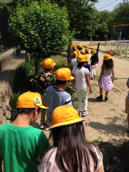 土曜授業の日に、阪南公園へ探検に出かけました。普段使っている公園は、花壇の手入れや清掃活動などを行ってくれている人がいることや、みんなが楽しく安全に遊ぶためのルールやマナーを学習しました。探検の最後には、少しの時間、お友だちと仲良く遊びました。