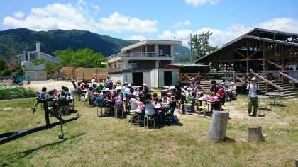 施設の前の広場でも、さわやかな風に吹かれながらのお弁当タイムです!