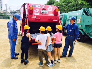 室内でごみの分別についてのお話を聞いたり、実際にパッカー車にごみを入れたりと、盛りだくさんの学習内容でした。