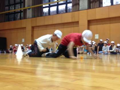 ピンポン玉運びリレー、ピンポン玉ふうふうリレー、風船はさみ競争、万歩計マラソンのチーム対抗戦です。