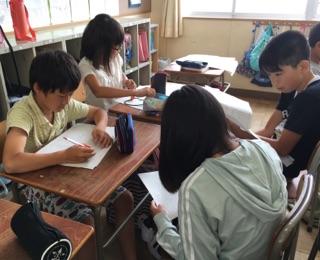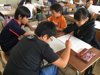 国語科「ずい筆を書こう」では、ずい筆が書き終わったので、今度は、