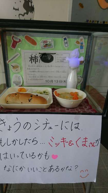 今日の給食のおかずは、米粉のコーンクリームシチュー!