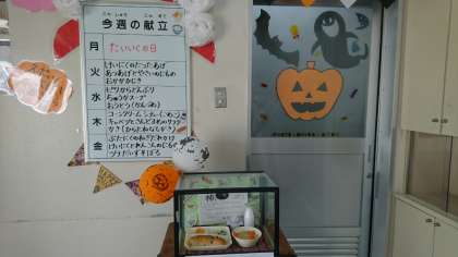 給食室も10月ということでハロウィンの飾りつけがされています。