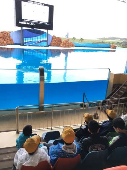 イルカショーが始まるのを待っています。