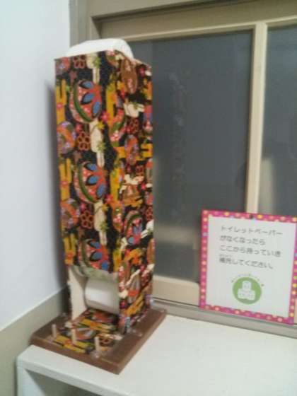 昨日の続きです。保健室前にもトイレットペーパーフォルダーが設置してあります。デザインは和風となっています。