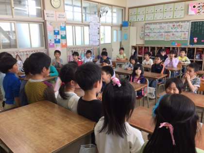 1年生は、初めて見るたくさんの教室に大興奮!2年生の説明に目を輝かせていました。そして終わったあとに、ペアのクラスにお礼を言いに行き、「これからも仲良くしていこうね。」とあいさつをしました。