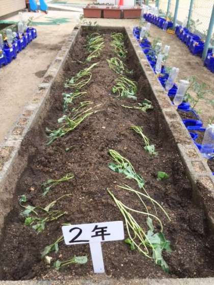 ミニトマトとサツマイモの苗が届きましたので、観察をして植木鉢と学習園に植えました。