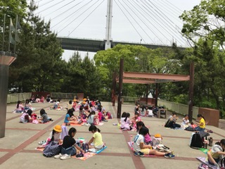 天保山公園では、友だちとお弁当タイム!ニコニコと楽しそうに食べている姿が印象的でした。