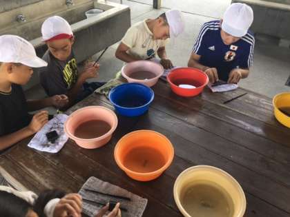 綺麗な模様が出るように、砥ぎ石で磨きます。