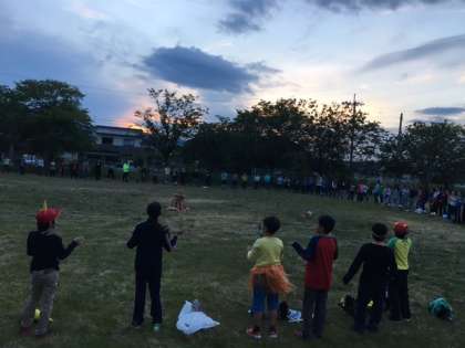 太陽が沈みつつある中、楽しみにしていたキャンプファイヤーがはじまりました。