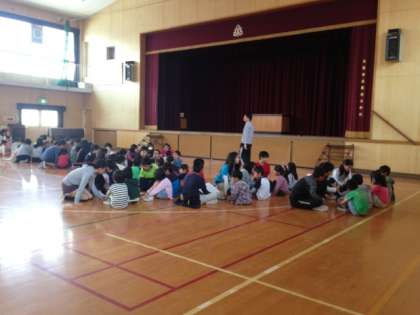 ペア学年でこれから児童集会が行われます。