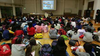 カヌーやアーチェリーの活動を終えて、入所式です。