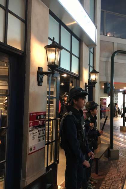警備のお仕事をして、町を安全に守ったり