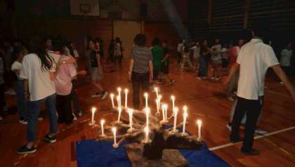 夕方から小雨が降り始めました。残念ながら、キャンプファイヤーはできないので、キャンドルファイヤーとなりました。
