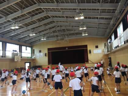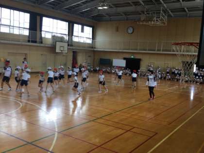 2時間目は、ミニゲーム!赤と白に分かれて、それぞれのチームにコーチも入り、白熱したゲームとなりました。合計6試合行い、観ている側のどちらのチームの応援もすごかったです。