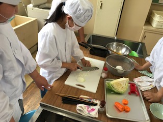 5年生の頃に調理実習を経験してきているので、準備の動きはテキパキしており、調理をしながら必要のないものを片付けていくなど、自分の役割やできることをしっかり把握しながら活動しているのが伝わってきました。