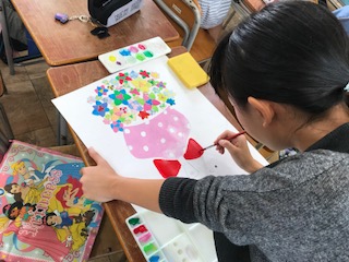 運動会練習が続き、着替えや移動が多く、慌ただしい日もありますが、心を落ち着かせて丁寧に仕上げています。完成した絵はコンクールに出品する予定です。