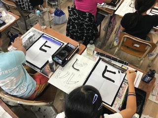 今週、3年生は習字の学習をしました。初めて筆を握った頃に比べると、「とめ・はね・はらい」が上手にできるようになってきました。