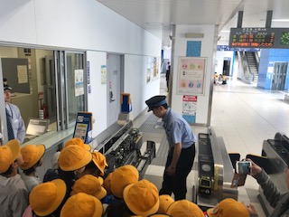 その後、ホームにあるもの、券売機でできること、改札機の仕組みなどを実際に詳しく見せてくれました。