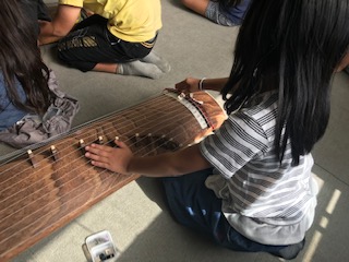 4年生は音楽科の学習で琴を演奏しています。最初は琴の弾き方が分からなかったのですが、音楽専科の松本先生に教わり、練習を積み重ねるうちにいい音を出すコツが分かってきました。