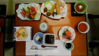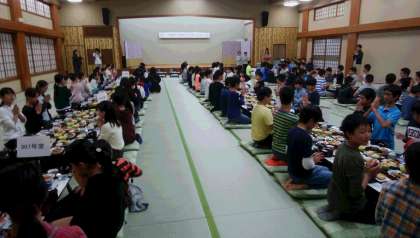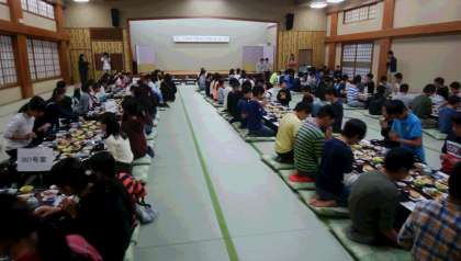 三楽荘の夕食です。「いただきま〜す!」の元気な声とともに夕食が始まりました。