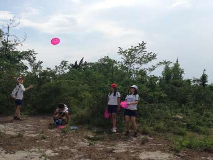 午後はディスクゴルフ、砂の造形、自然観察を行いました。