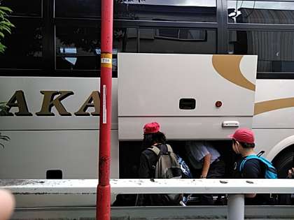 バスに乗り込み出発しました。