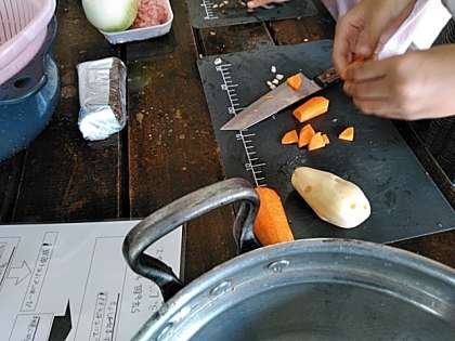 その後、火おこしをしてカレー作りをしました。