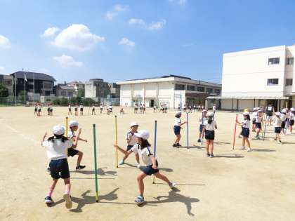3年生では、体育科の学習で「体つくり運動」を行っています。