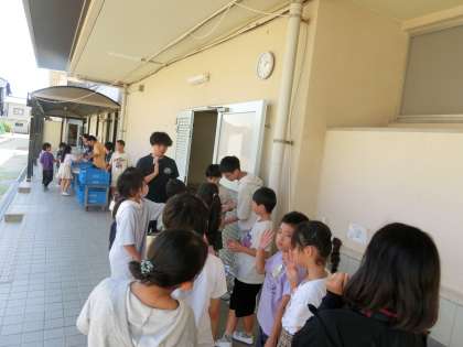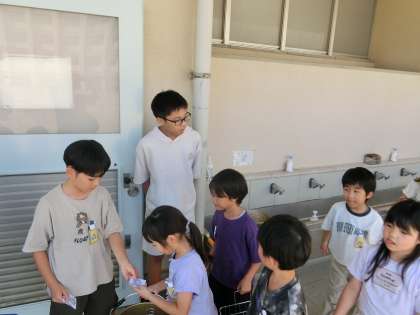 給食を返却するときに給食委員会の児童が食缶をチェックして空になっていれば手作りのオリジナルカードがもらえます。