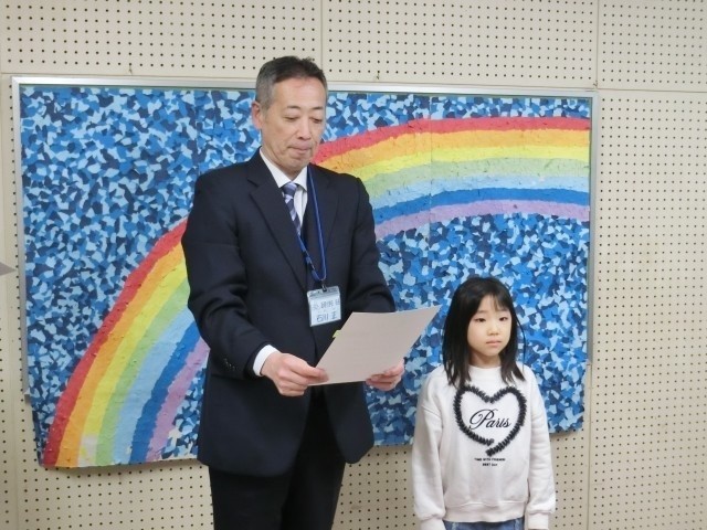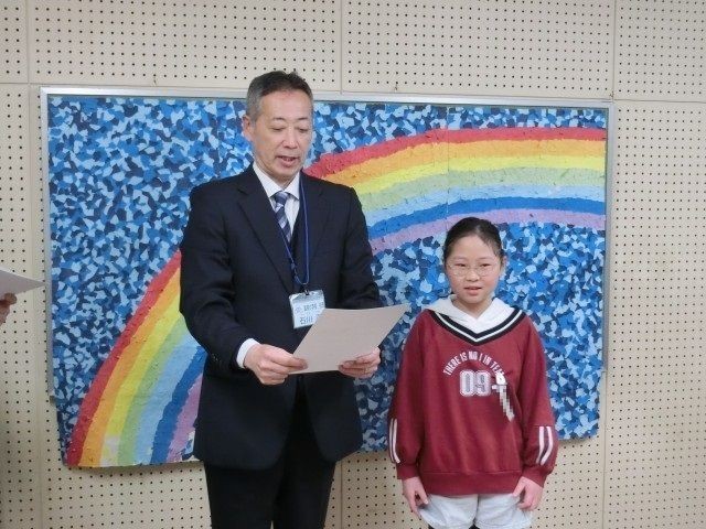 児童朝会がありました。はじめに、校長先生から表彰がありました。