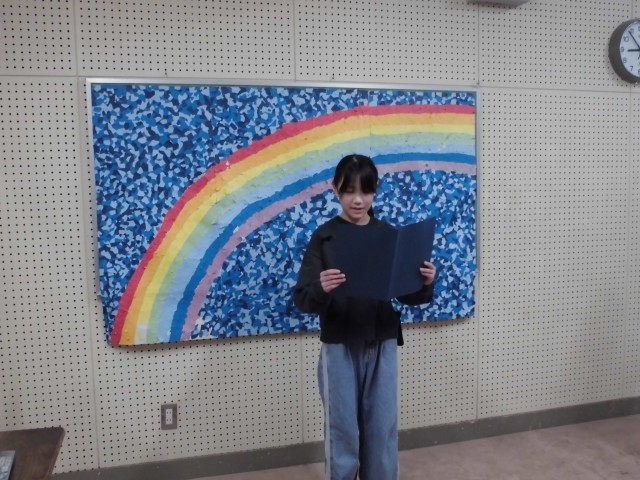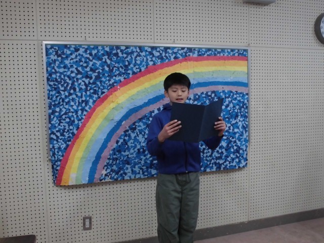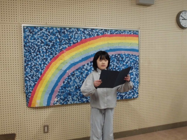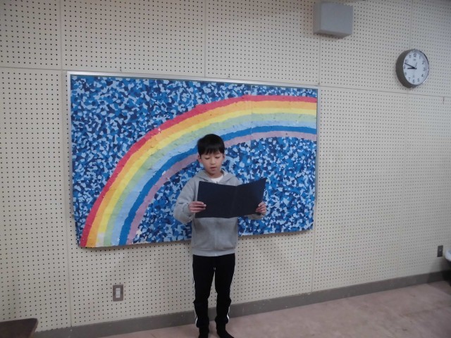 はじめに、4年生の各クラスの代表児童が、4年生で頑張ったことや、これから挑戦したいことを発表しました。どの児童も堂々とした姿で、聞いている側も頼もしさを感じました。