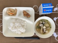 今日の給食は、鶏肉の塩こうじ焼き、かす汁、くりきんとん、ごはん、牛乳です。