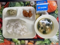 今日の給食は、ポトフ、鶏肉と野菜のケチャップソテー、デコポン、おさつパン、牛乳です。