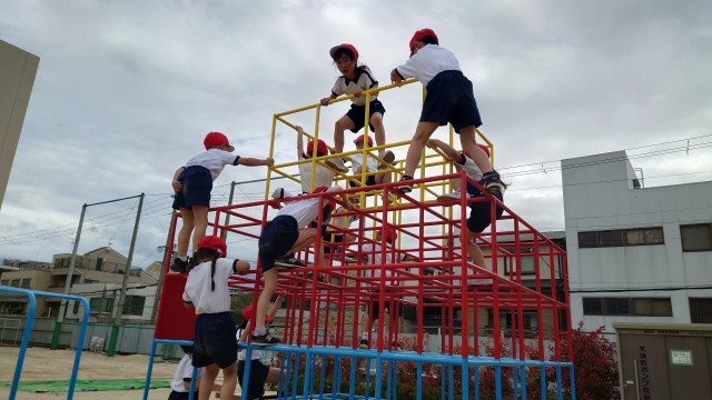 ジャングルジムや鉄棒、うんてい、のぼり棒に挑戦中!!
