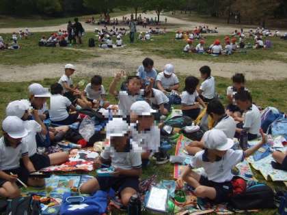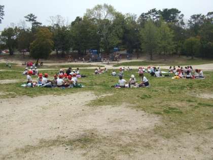 昼食場所に移動してから、みんなで楽しくお弁当をたべました。ここも人が少なく緑がきれいな場所だったので良かったです。