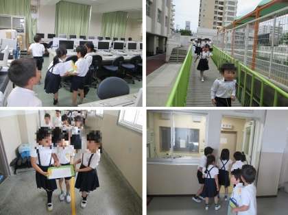 今回は2年生に学校中を案内してもらいました。保健室・事務管理室・管理作業員室・職員室・校長室・図書室などの部屋をたんけんしました。