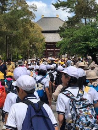 5年生が奈良方面へ春の遠足に行きました。学校の団体や外国からの観光客の方など大盛況でした。