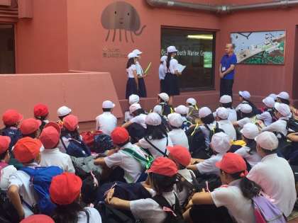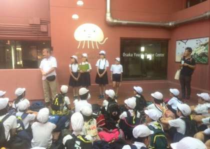 大阪府立青少年海洋センターに到着しました。入所式をしています。