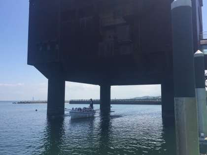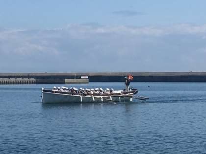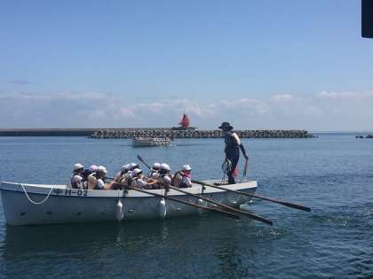 カッターを漕ぐのも慣れてきたようです。建物の柱の間も通れるようになりました。