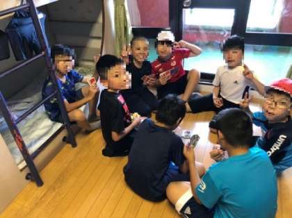 晩御飯までの間部屋で楽しく過ごしています。トランプをしたり今日の活動の思出話をしたりして楽しそうです。
