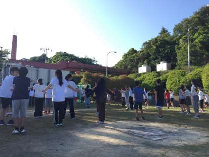 2日目 海もきれいで風が爽やかです。 最初の活動 朝の集いです。