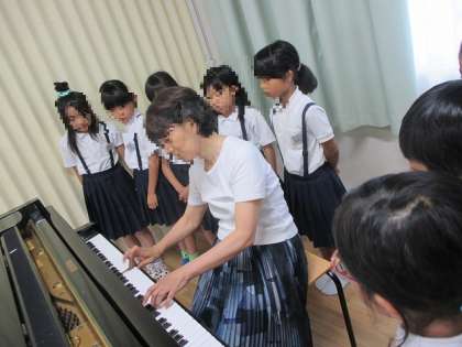 「地域の名人をさがせ」では、子どもたちの希望から、あみもの・ちぎり絵・カラーセラピー・ピアノ・野球・サッカー・マット体操の名人に来ていただきました。