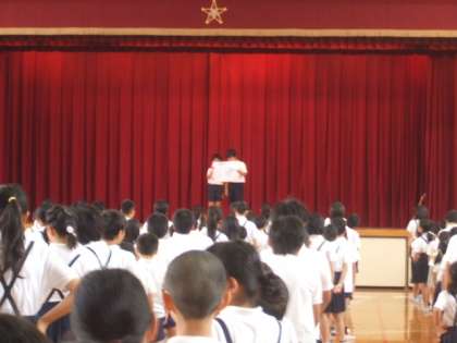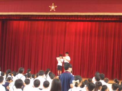また、健康委員会からは、「夏を元気にすごそう」と水分補給や外で活動することの大切さについて連絡がありました。