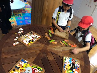 木のぬくもりが感じられるおもちゃに、みんな夢中です。
