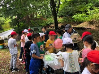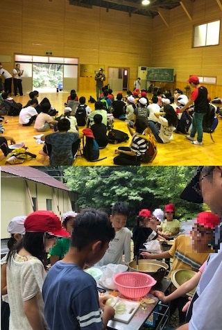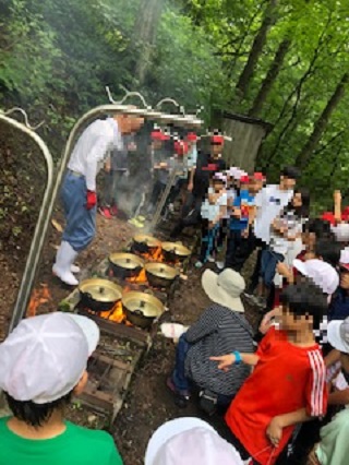 カレーの作り方を聞いて、飯盒炊さんがスタートです!みんなの願いが通じたのか、お天気になってきました。